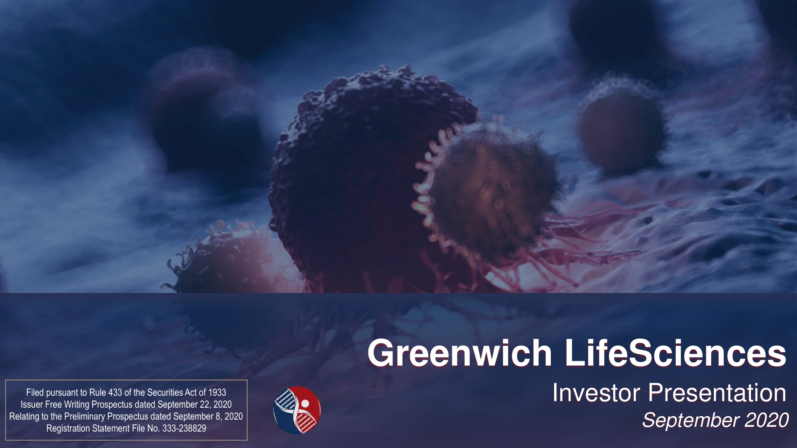 Greenwich LifeSciences Investor Presentation September 2020 Filed pursuant to Rule 433 of the Securities Act of 1933 Issuer Free Writing Prospectus dated September 22, 2020 Relating to the Preliminary Prospectus dated September 8, 2020 Registration Statement File No. 333 - 238829